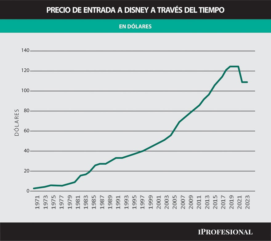 A manera de referencia, un ticket para Disneyworld que costaba en 1971 u$s3,50 se elevó al cabo de 10 años se multiplicó por 3, hasta por encima de los 15 dólares. Pasaron los años y ya en el nuevo siglo treparon hasta los u$s50.