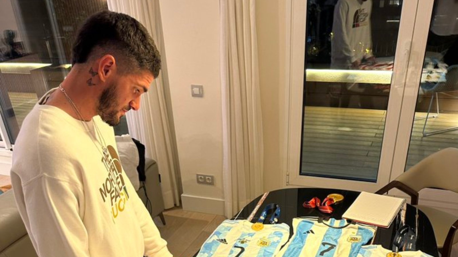 Además, el ex jugador de Racing compartió una foto con todas las camisetas que utilizó a lo largo de su trayectoria desde que surgió de las Inferiores de la “Academia”: Valencia, Udinese, Atlético de Madrid y la Selección argentina.
