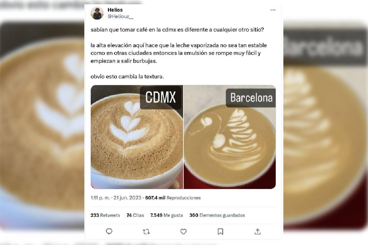 Según Ocaña Ruiz, la alta elevación de la Ciudad de México provoca que la leche vaporizada no sea tan estable como en otras ciudades, lo que resulta en la rápida ruptura de la emulsión y la formación de burbujas en el café latte. Esta variación en la textura se debe a múltiples factores, como la cantidad de grasa en la leche, la acidez del café, la habilidad del barista y la temperatura de la preparación. Sin embargo, la altitud desempeña un papel fundamental.