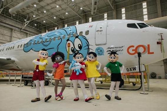 ¡La banda más famosa de Brasil está en el aire! Una asociación entre GOL – la mayor aerolínea de Brasil – y Mauricio de Sousa Producciones (MSP) despega con la acción “Mônica60”, en homenaje a la famosa serie brasileña. Un Boeing 737-800 totalmente ploteado, interna y externamente, tiene artes inéditas creadas exclusivamente por MSP para celebrar los 60 años de Mônica, personaje que conquistó millones de fans en todo el mundo.