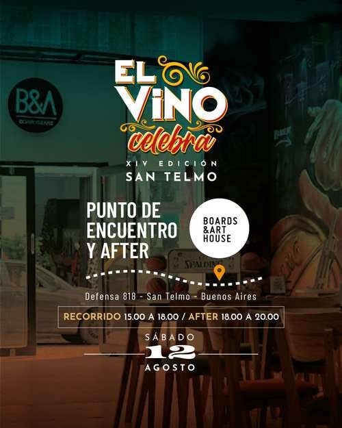El punto de partida y de llegada del recorrido será en La Huella de San Telmo (Defensa 818) entre las 15:00 y las 18:00 horas, y hasta las 20:00 hs tendrá lugar el After Wine! donde habrá vinos, espumantes, wine cocktails, tapas, música, arte, y mucho más! Un impresionante circuito de cata de vinos y arrabal.