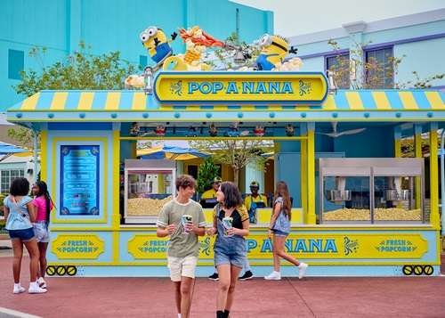 Este kiosko ofrece palomitas de maíz dulces y saladas, incluyendo una especial con sabor a banana, inspiradas en el amor de los Minions por las bananas. Aquí, los visitantes también pueden encontrar una variedad de lindos baldes de palomitas de maíz, incluyendo el Disco Minion