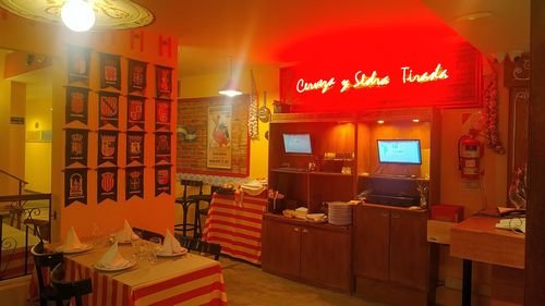 Un local con muy buenos espacios para moverse y comer con comodidad, con una ambientación muy cuidada y prolija, atención amable de su personal ofreciendo recomendaciones culinarias, referencia de lugares clásicos de España en sus paredes (como la calle de Alcalá, Plaza Mayor, la Puerta de Toledo, el Camino de Santiago, diferentes ciudades de España, banderines de cada región), los platos típicos que distinguen a la cocina de La Torca, música española de fondo acompañando el momento y la imagen con los jamones colgados en el techo.