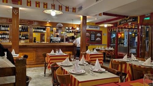 Qué decir de los platos, disfrutar del jamón ibérico, del club de la mejor tortilla de papas (española, castellana, madrileña, sevillana, asturiana y más opciones), paellas, pescados (merluza, brótola, lenguado, abadejo, entre otros), mariscos como rabas, cazuelas, cornalitos, calamaretis, tabla de mar, platos con langostinos, chipirones, gambas al ajillo, tapas, arroces, huevos rotos, vieiras, cachopo (milanesa rellena de jamón serrano con queso), natillas, además de minutas, cortes de parrilla, milanesas, pastas, amplia carta de vinos de bodegas reconocidas, además de cerveza y sidra tirada.