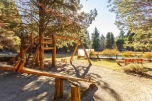 Además el complejo cuenta con piscina y juegos para niños para disfrutar en familia y solo una tranquera lo separa de la playa del lago Moreno, tan pacífica y agradable para disfrutar del agua, hacer deportes acuáticos o tirarse a descansar.