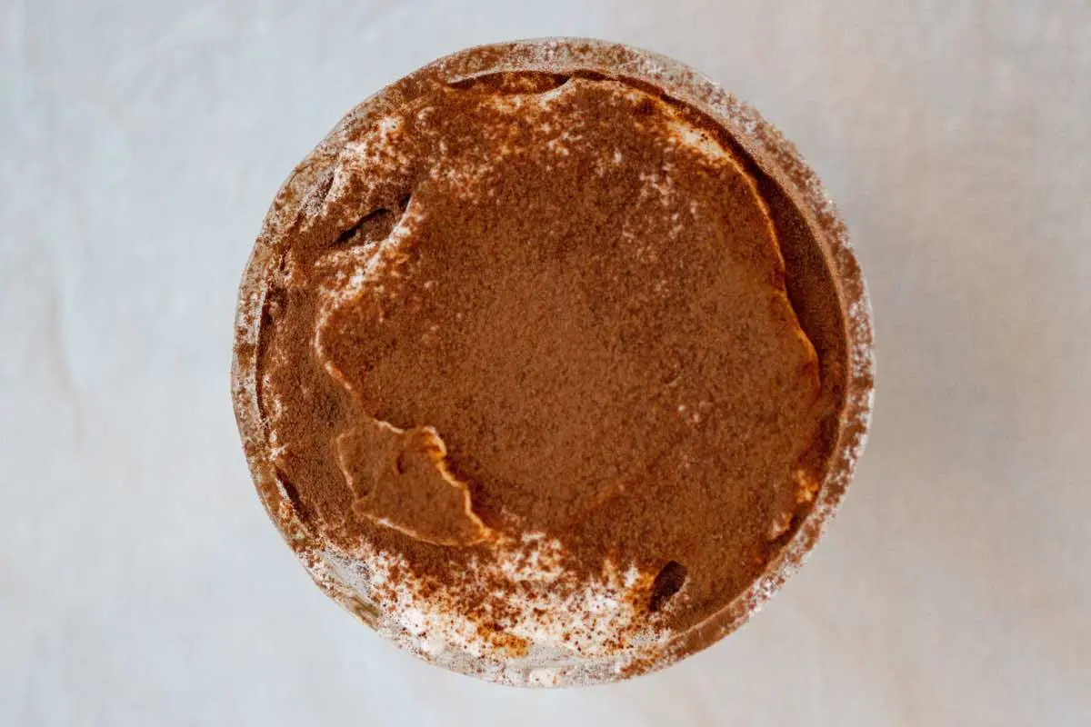 - En la parte superior puedes decorar con un poco de cacao en polvo y con unas frambuesas partidas a la mitad.