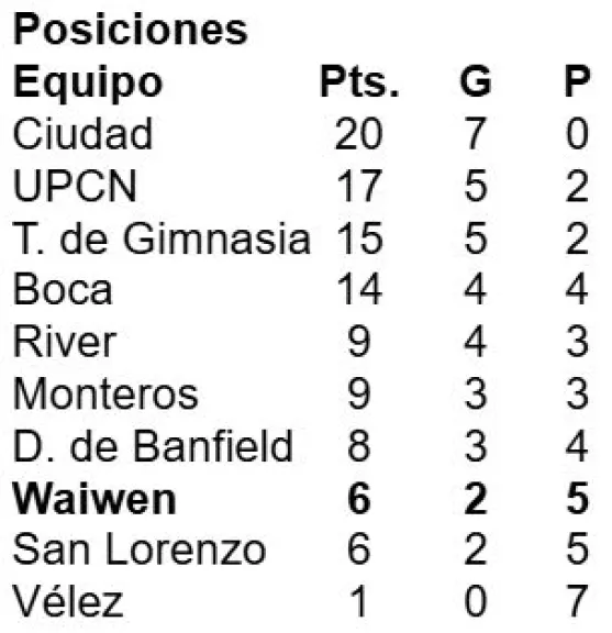 Este viernes, en el cierre de la segunda jornada, Waiwen se cruzará con Boca, que llega tras perder el clásico ante River por 3-2 en el arranque de la fecha, en un partido disputado en Buenos Aires, y que también cayó en el estreno el jueves ante Tucumán de Gimnasia.